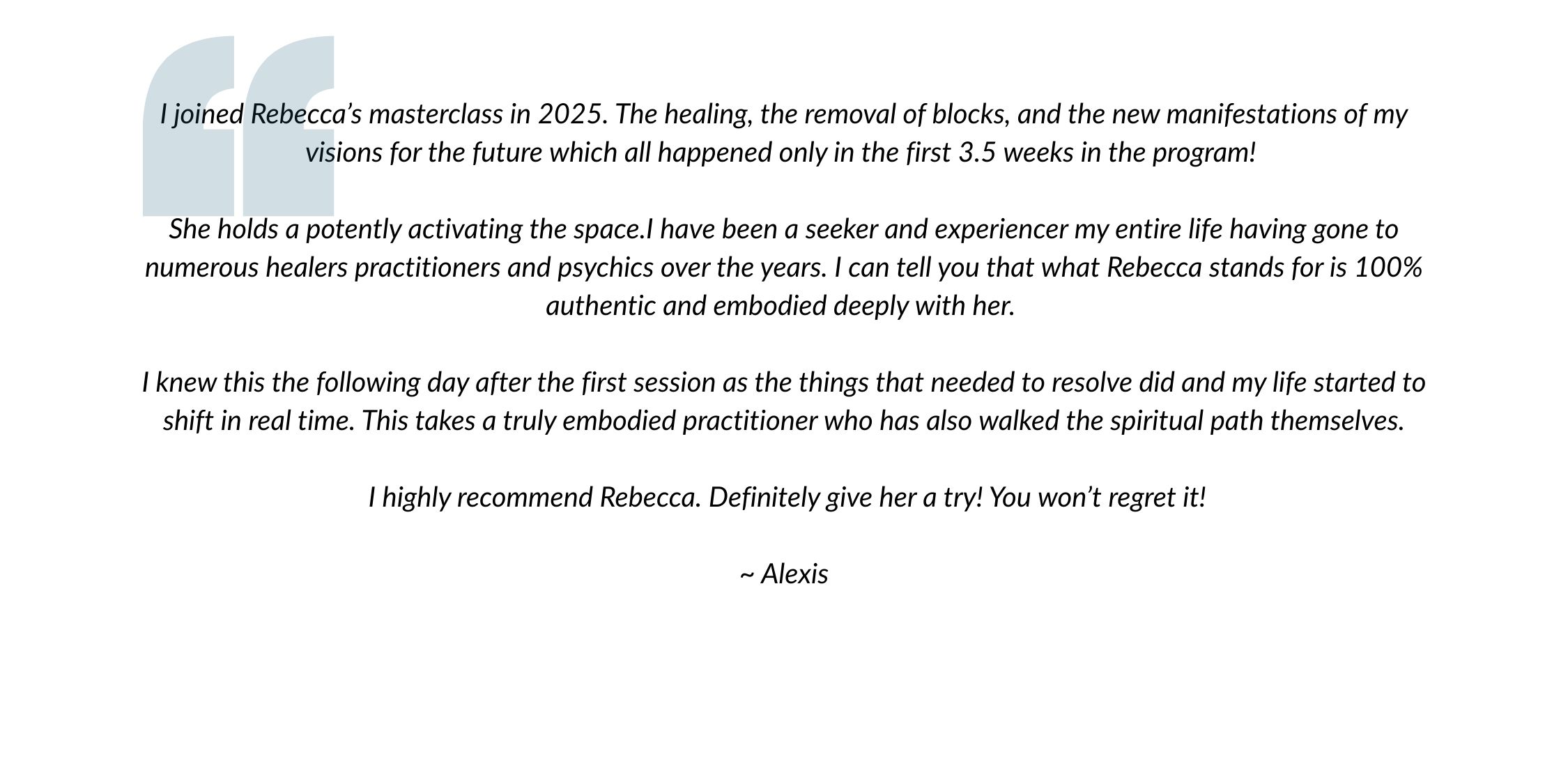 Rebecca specializes in leading transformative trainings, curating rejuvenating retreats, and crafting deeply personalized ceremonies that inspire growth, healing, embodiment, and mastery.